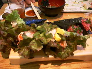写真はサラダ巻き(150円)とネギトロ(300円)です。